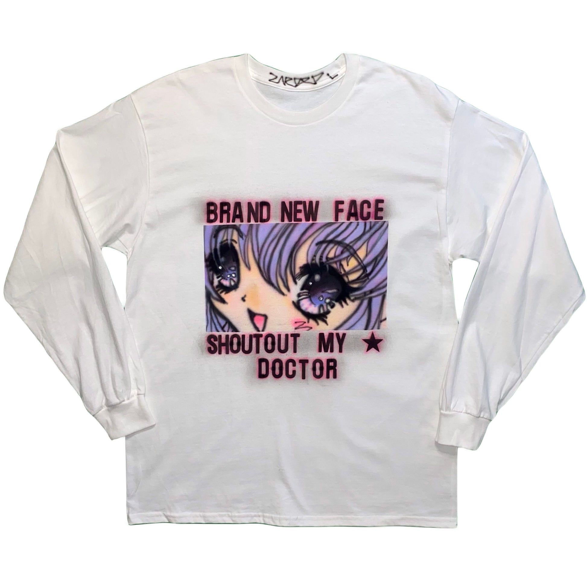 This piece was made from a new blank garment and transformed into one of one wearable art. Zaroxo adds hand drawn and airbrushed designs, making the garment uniquely yours. Each piece is finished with rhinestones that are individually applied by hand.